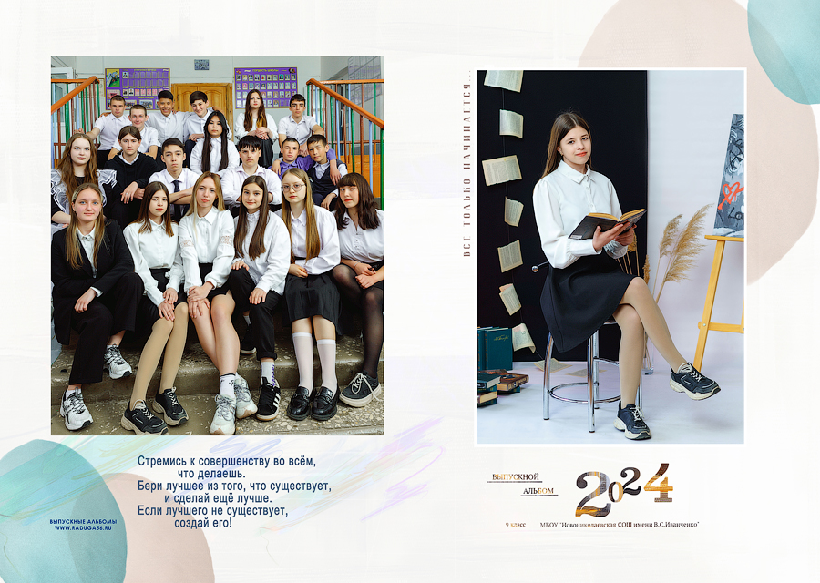 Выпускной фотоальбом для 9-11 классов 4страницы. (студийная сьемка, подписанные портреты, 4 груп. фото)